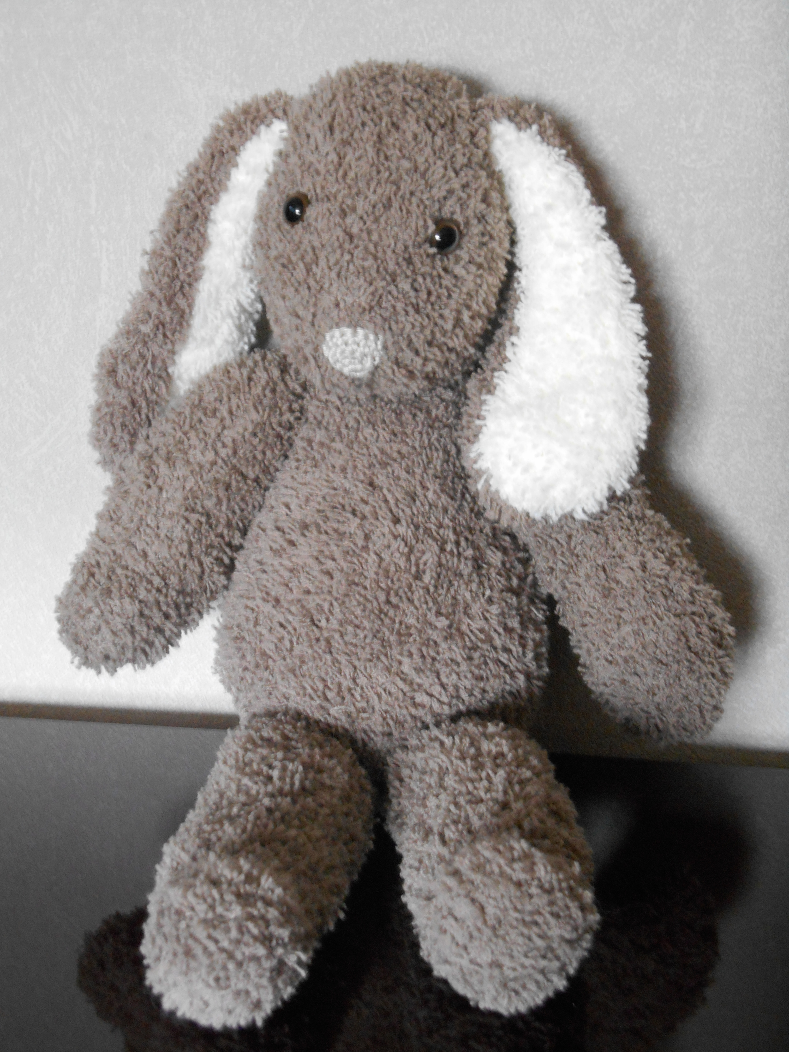 Voor de beschrijving van het konijn wordt men doorverwezen naar de hobbydoos, daar wordt het konijn gebreid met breinaalden 2,5 maar de Lammy Yarns Teddy soft wol wordt gebreid met breinaalden 4.
